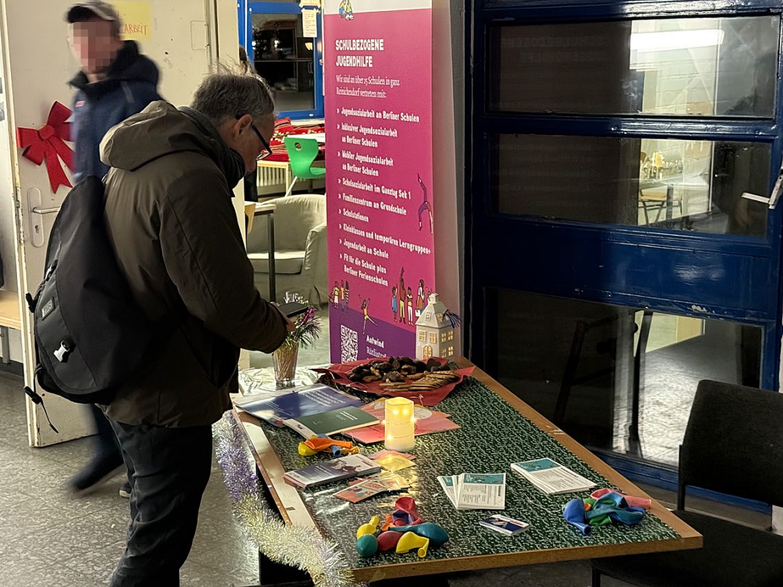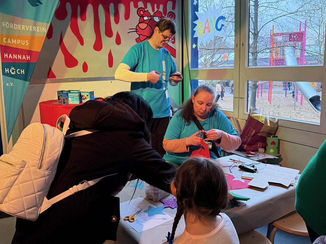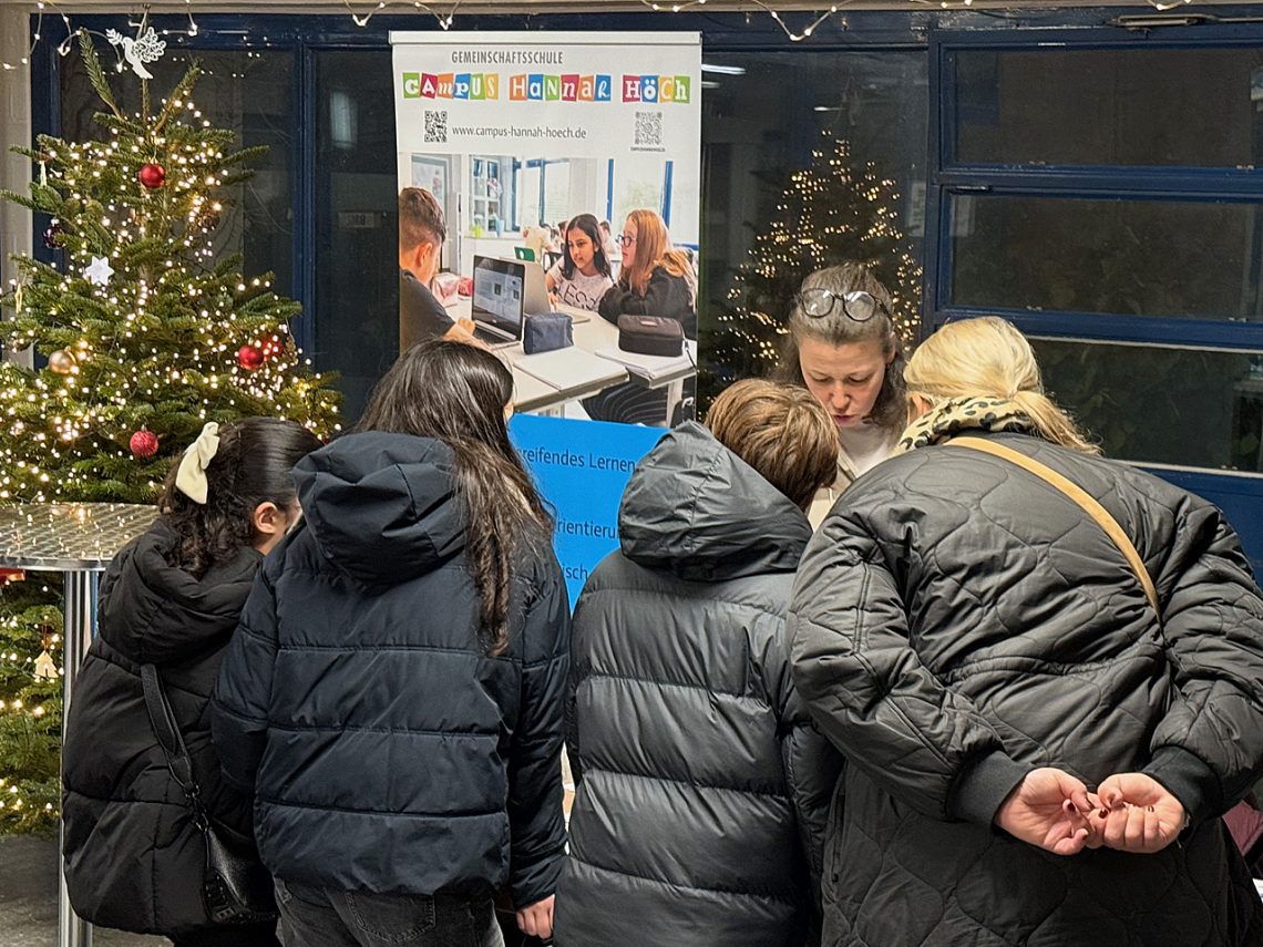 Zeitgleich zu den Weihnachtswerkstätten in der Grundstufe des Campus fand wie gewohnt ein Tag der offenen Tür statt, in dem Schüler:innen und Lehrkräfte über die Mittelstufe am Campus Hannah Höch informierten und sich die Schulsozialarbeit sowie kooperierende Ausbildungsbetriebe vorstellten.