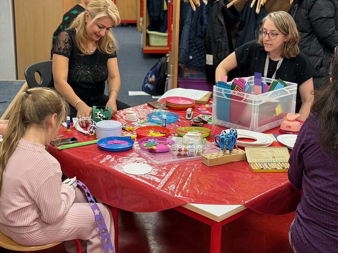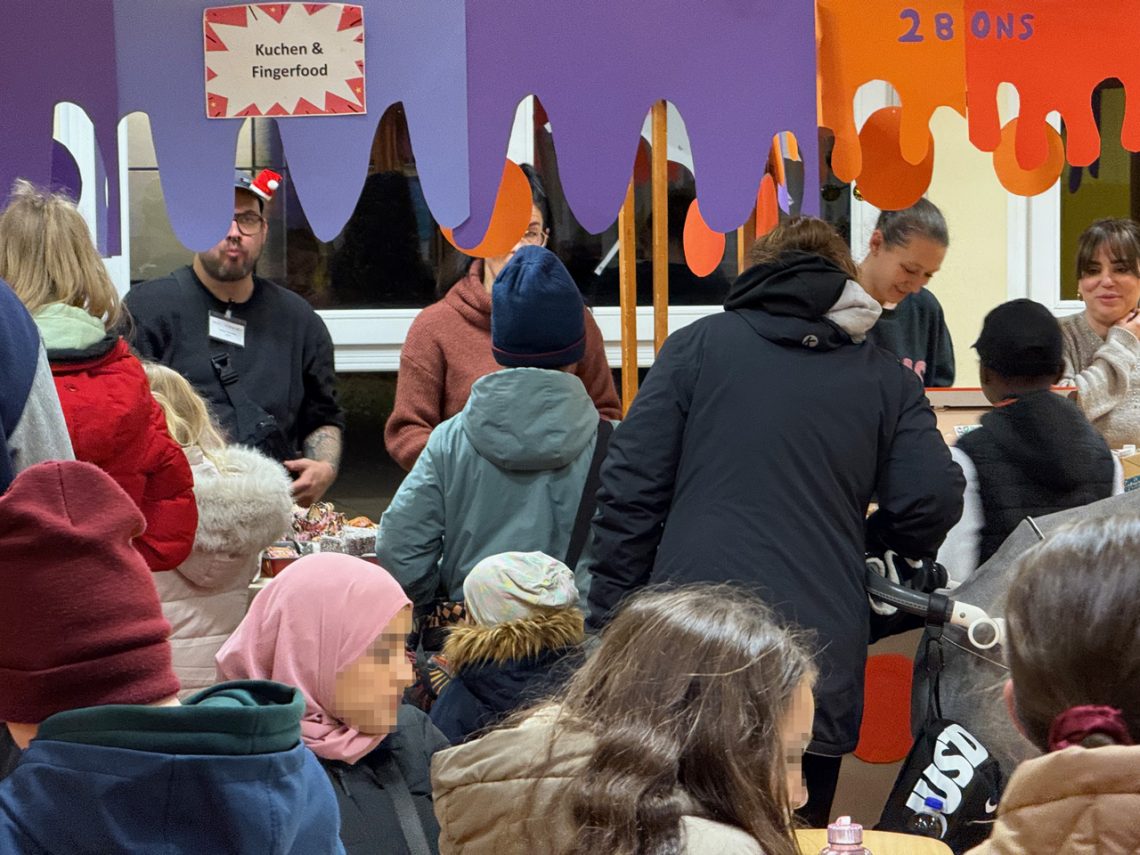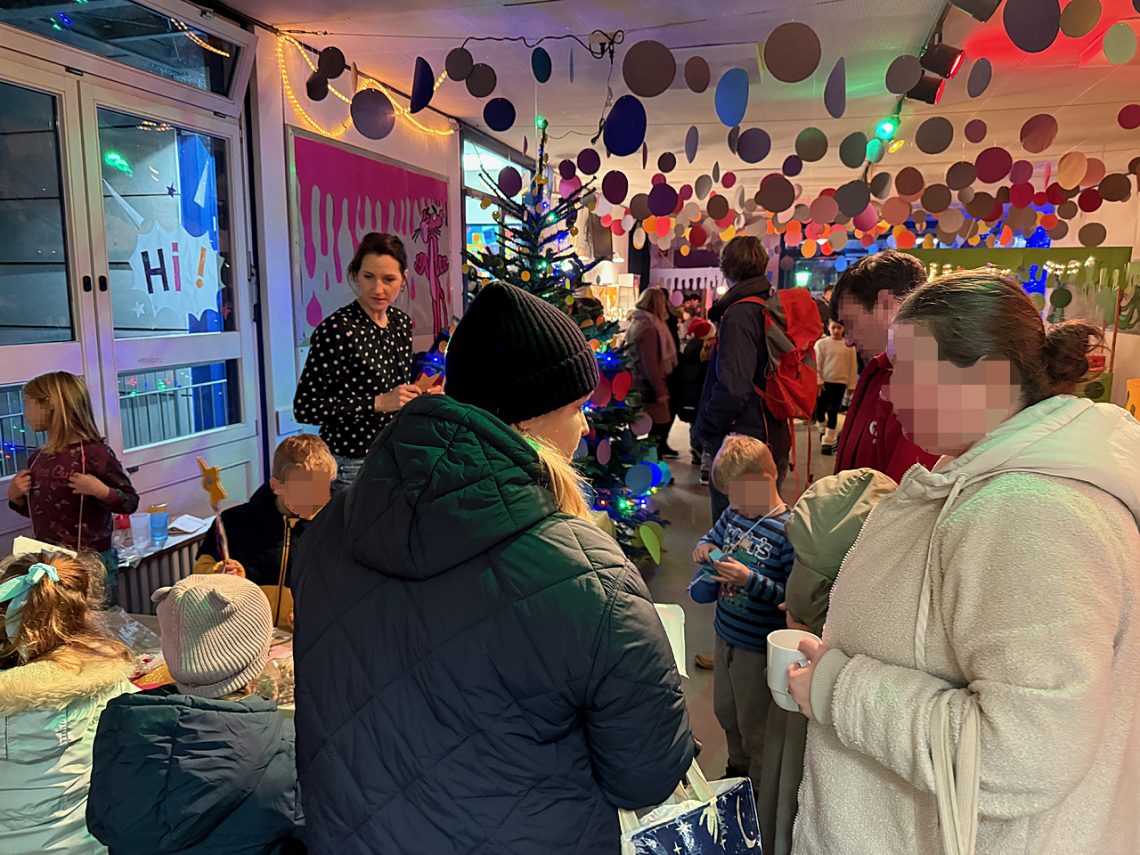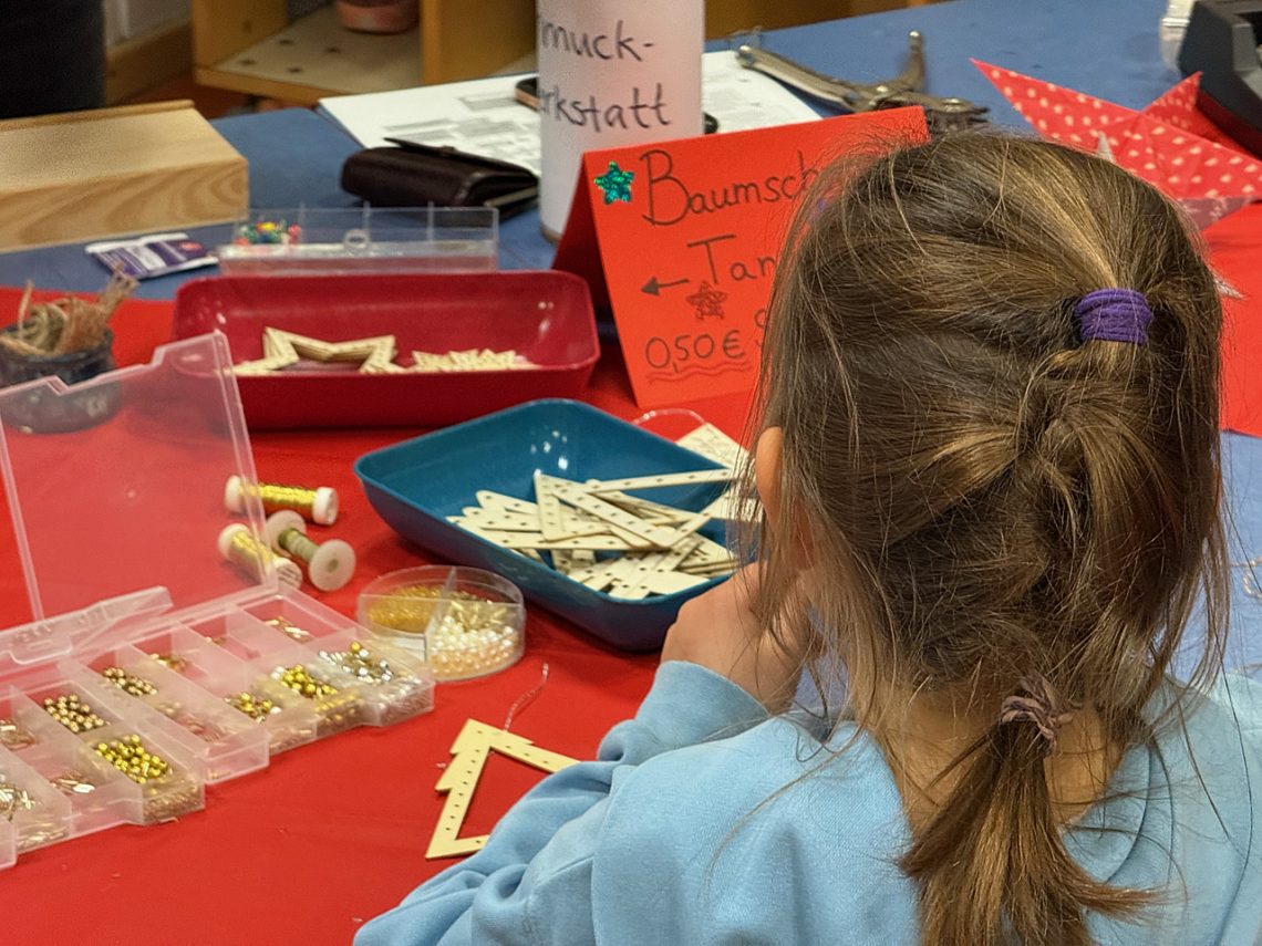Die Weihnachtswerkstätten zeigten, wie Schule ein Ort sein kann, an dem Lernen, Freude und Zusammenhalt Hand in Hand gehen. Auch in diesem Jahr sorgten Lehrkräfte, Erzieher:innen, Mitglieder des Fördervereins sowie Eltern und natürlich Kinder mit ihrem gemeinsamen Engagement dafür, dass die Werkstätten ein besonderer Höhepunkt im laufenden Schuljahr wurden. Besonders die Eingangshalle von Haus 1 war wieder prächtig geschmückt. Eltern steuerten Speisen und Getränke bei, die Erlöse aus dem Verkauf gehen an den Förderverein.