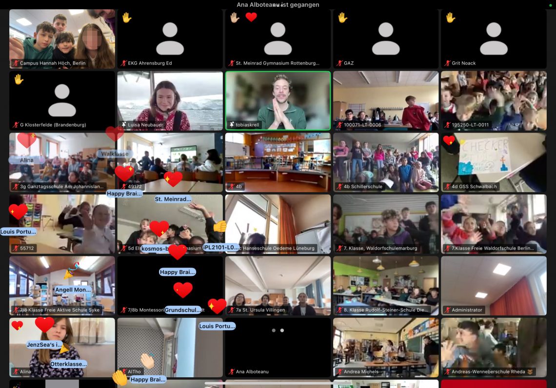 Am 14. Januar nahmen Schülerinnen und Schüler des Campus Hannah Höch am „Globalen Klassenzimmer“ mit der Klimaaktivistin Luisa Neubauer teil. Das war eine Live-Videoschaltung auf das Segelschiff Malizia Explorer, mit dem Luisa mit dem Weltumsegler Boris Hermann sowie mehreren Forscherinnen und Forschern in der Antarktis unterwegs ist. Moderiert wurde die Videokonferenz von Tobias Krell alias Checker Tobi.