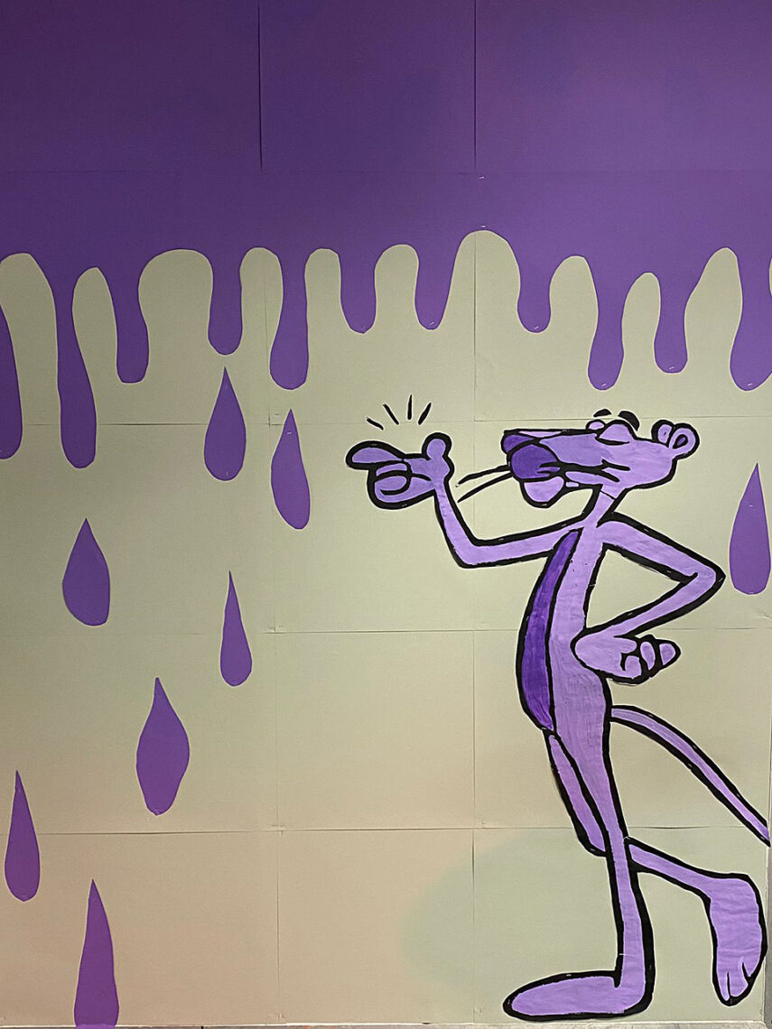 Zurzeit ziert der Pink Panther überall die Wände und Fensterscheiben in den Häusern des Campus. Er verkörpert das Jahresmotto „Farbe bekennen“, denn er vereint beides: Farbe künstlerisch bekennen und seine Meinung äußern bzw. eine Meinung vertreten.