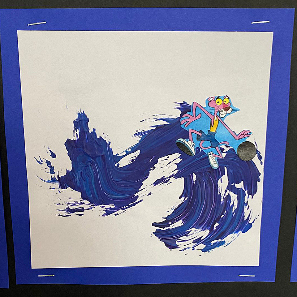 Beides wurde in künstlerischen Arbeiten unserer Schülerinnen und Schüler der Grund- und Mittelstufe vielfältig umgesetzt: In der Natur ist der Panther schwarz, im Comic pink und bei unseren Schülern und Schülerinnen bunt. Seine Meinung äußert der Campus-Panther mit Comic-Sprache: „Nö!“, „Bang!“, „Grrrrr!“ und „Cool!“.