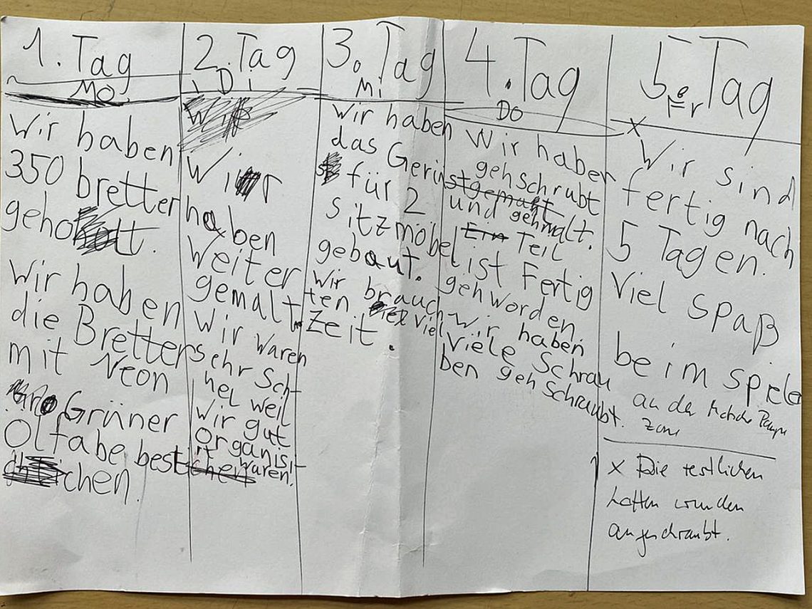 3. Tag: Wir haben das Gerüst für zwei Sitzmöbel gebaut. Wir brauchten viel Zeit.