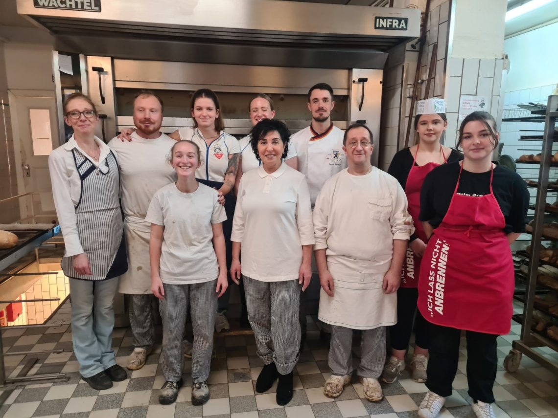Am Mittwoch erhielten die Schülerinnen in der Feinbäckerei & Konditorei Laufer GmbH gemeinsam mit der Bezirksbürgermeisterin einen kurzen Einblick in die Firmengeschichte und die Ausbildungsberufe, bevor sie sich unter Anleitung selbst ausprobieren durften. Das gemeinsam hergestellte Ciabatta und die Florentiner durften probiert und mitgenommen werden.