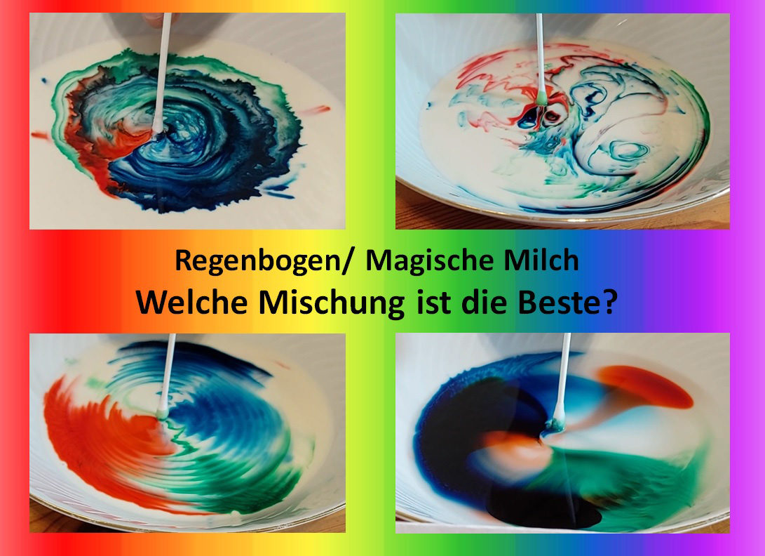 Ich habe im Internet viele verschiedene Rezepte für Regenbogenmilch sowie verschiedene Erklärungen gefunden, wie man sie herstellt und was dabei passiert. Ich wollte das beste Rezept finden und wissen, warum es sich mischt.