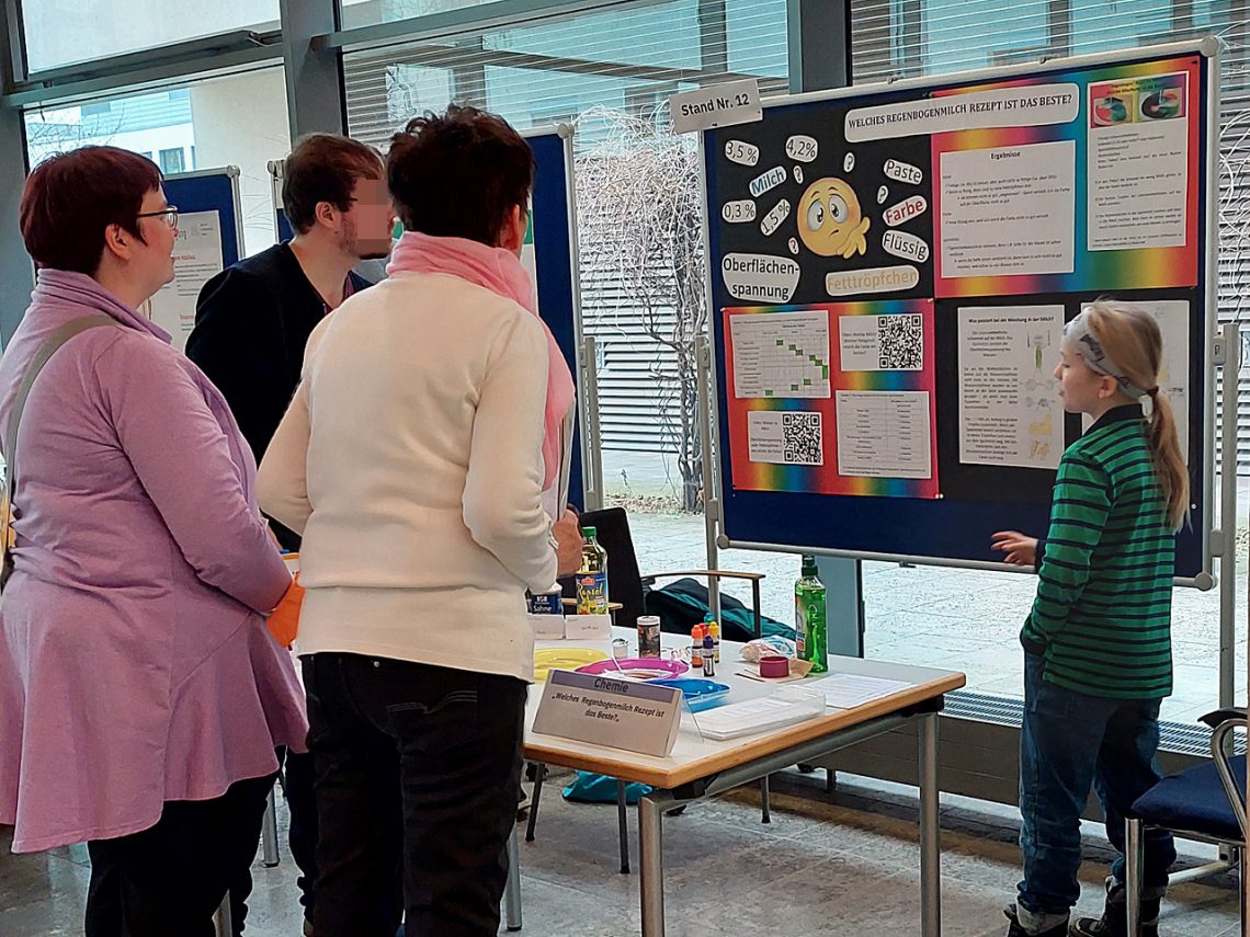 Die Jury bewertet die Teilnehmer*innen nach der visuellen Präsentation ihres Standes, nach der schriftlichen Arbeit und nach dem Jury-Gespräch. Merke: Nur weil du kleiner bist als die anderen, heißt das nicht, dass du keine Chance auf den 1.Platz hast: Es geht nur darum, dass du dein Experiment gut durchführst.