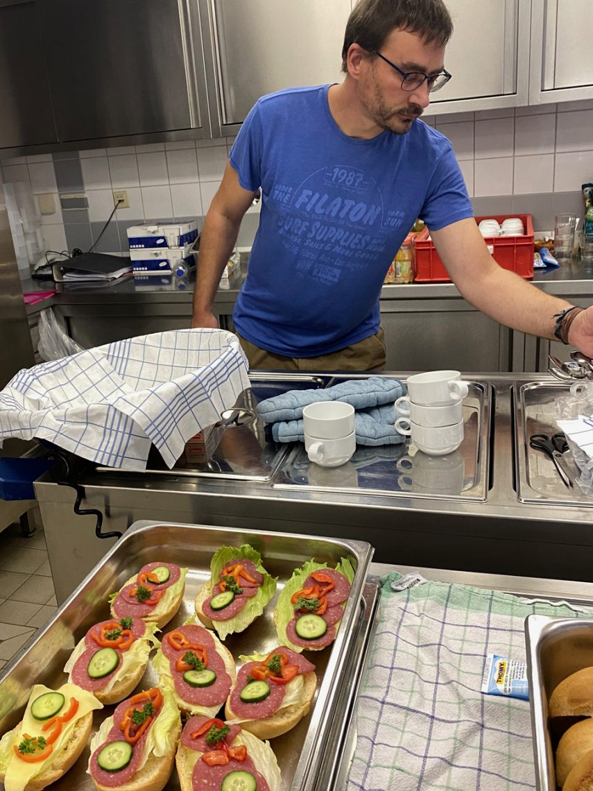 „Essensreste müssen wir leider aus Gründen der Hygiene wegwerfen, weil vorher die Kühlkette unterbrochen wurde“, sagt Herr Wewer. „Aber jeden Donnerstag kochen wir aus übrig gebliebenen Zutaten um die 100 Portionen Suppe, die ‚Hertha hilft‘ an Obdachlose verteilt.“