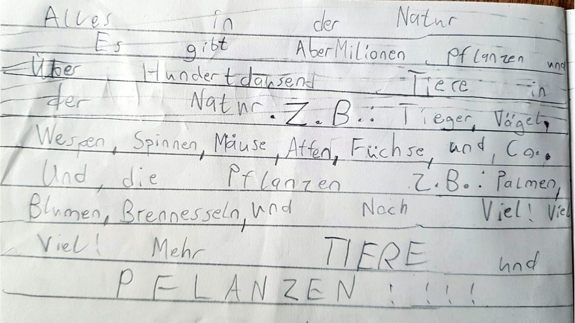 „Mir macht die Schule Spaß, vor allem der Stopptanz. Ich mag am liebsten Sport und Schwimmen.“ (Olivia)