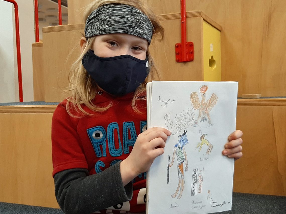 Wir haben das in der Notbetreuung gemacht. Herr Fiedler hat alles gefilmt, damit die anderen Mitschüler zu Hause sehen konnten, was wir gemacht haben und was für Hausaufgaben wir haben.