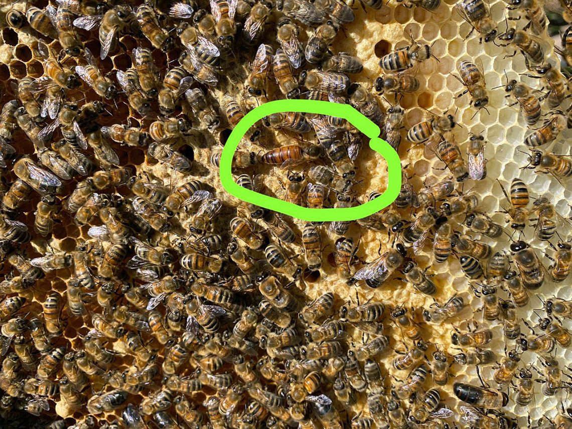 Drücken wir den Bienen und den Imkerinnen die Daumen, dass sie den Milbenbefall erfolgreich bekämpfen! Und hier noch die Auflösung der Suchaufgabe im ersten Bild dieses Artikels: